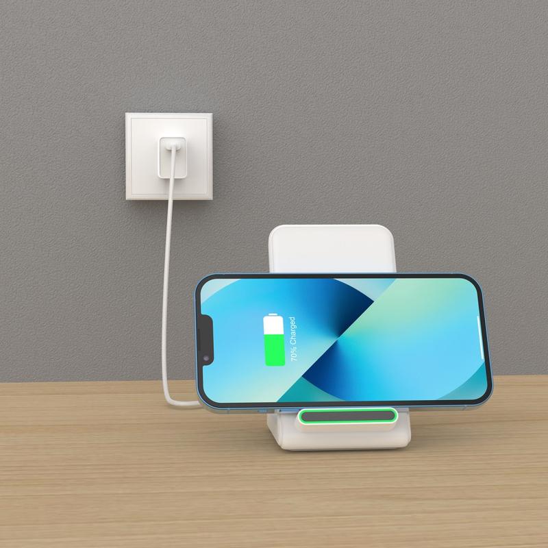 - Conveniência na cabeceira da cama: Utilize-o como carregador de mesa de cabeceira, garantindo um acesso fácil a alarmes ou notificações nocturnas.
