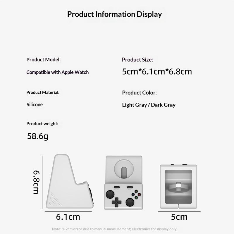 Suporte de carregamento em silicone estilo consola de jogos para Apple Watch - Base de carregamento antiderrapante com armazenamento para cabos