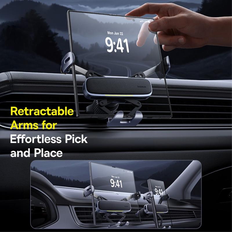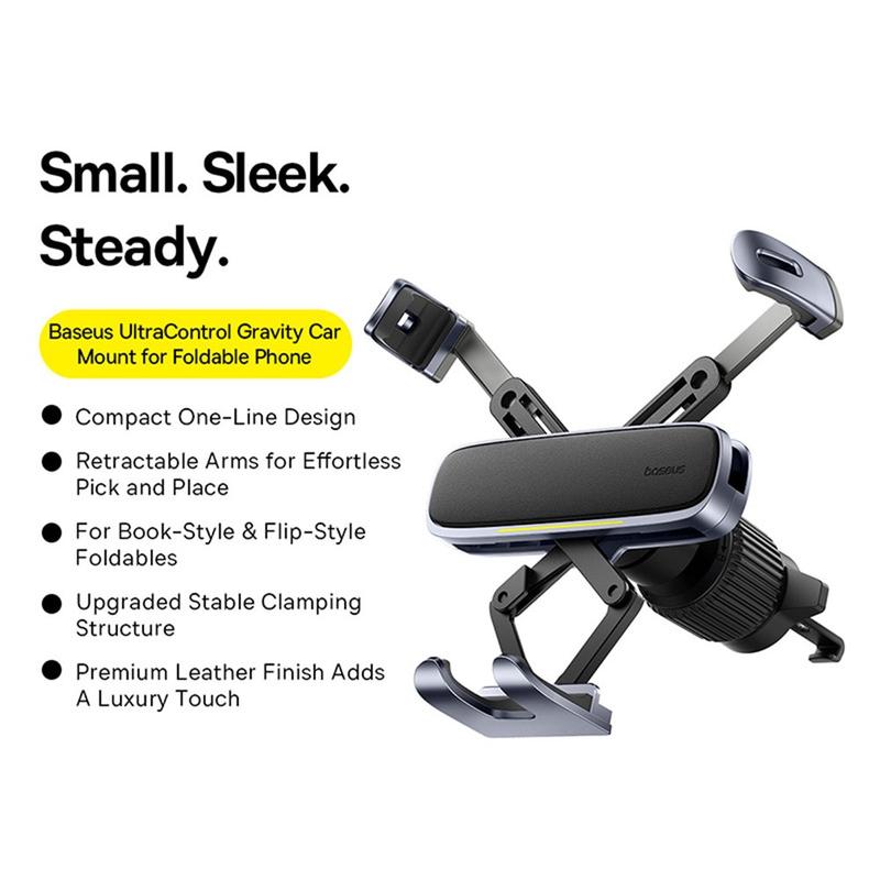 Melhore a sua condução com o Baseus Ultra-Control Car Air Vent Mount, que combina design inovador, conveniência e segurança para os utilizadores de telemóveis dobráveis.