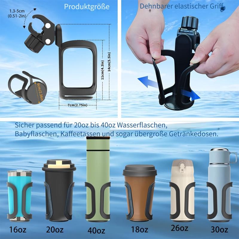 Suporte de garrafa rotativo de 360 graus com botão de libertação rápida - Suporte de braçadeira universal para garrafas até 8 cm, adequado para tubos de 1,5-4,2 cm