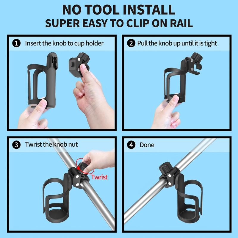 Monte um suporte para garrafas em quase todo o lado com este conjunto de 2 peças de suporte para garrafas de água de libertação rápida. Concebido com um sistema de fixação, adapta-se a uma vasta gama de tamanhos de tubos e permite-lhe posicionar o suporte exatamente onde quiser graças à rotação de 360°. O botão de libertação rápida torna a instalação e remoção simples e sem ferramentas - ideal se trocar de bicicleta ou pretender uma instalação fácil numa bicicleta eléctrica, tubo de guiador tipo scooter, quadro de carrinho de bebé, tubos de barco ou outros. Fabricado em plástico de nylon de alta resistência, foi concebido para passeios diários e utilização no exterior, mantendo a sua bebida facilmente acessível.