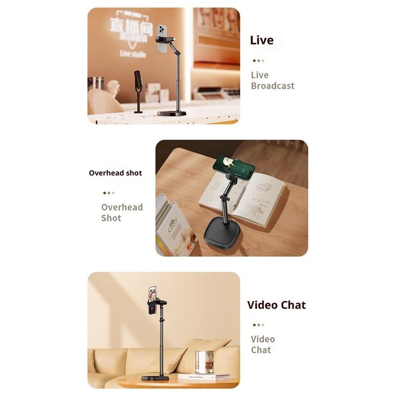 Crie vídeos, transmissões ou chamadas de qualidade profissional com o suporte de telefone de secretária ajustável T10, concebido para proporcionar estabilidade, flexibilidade e comodidade. A sua construção em metal sólido e a altura ajustável fazem dele o companheiro de mesa perfeito para transmissão em direto, criação de vídeo ou visualização em modo mãos-livres.