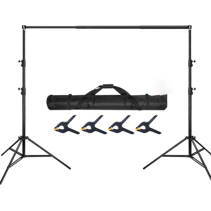 Suporte de tripé ajustável com 4 grampos para fundo fotográfico - 2,88x3m