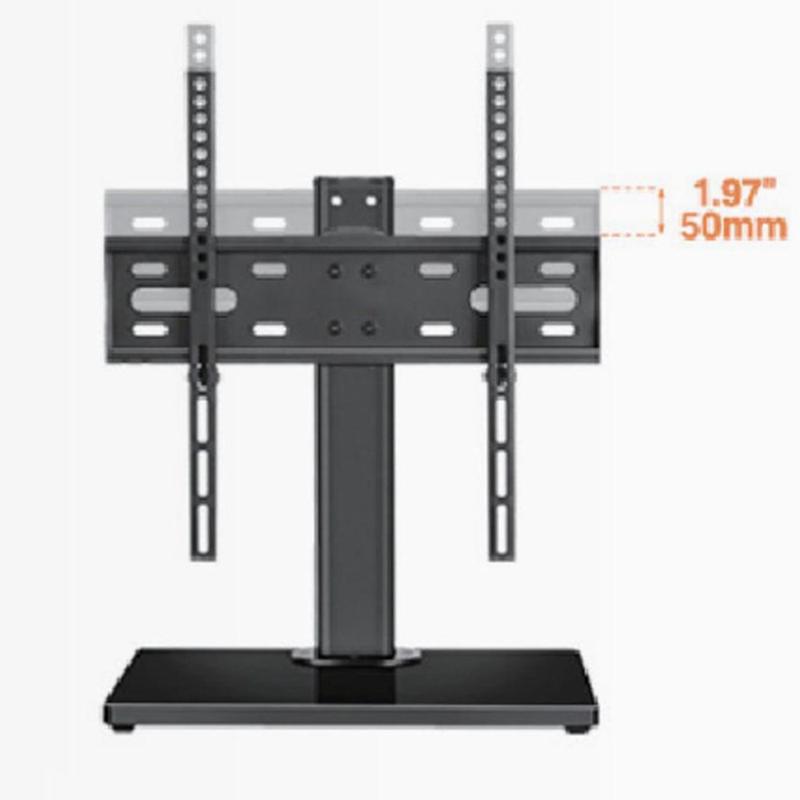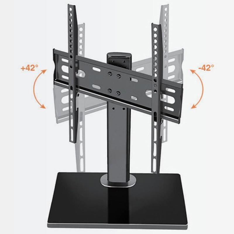 - Estética elegante: A moldura preta e a base de vidro liso realçam a decoração da sua sala, mantendo o televisor firmemente no lugar