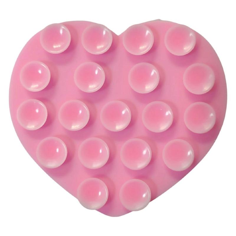 Suporte de ventosa de silicone de dupla face em forma de coração para smartphones - Suporte mãos-livres de forte aderência, 70 x 63 mm