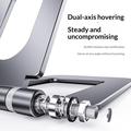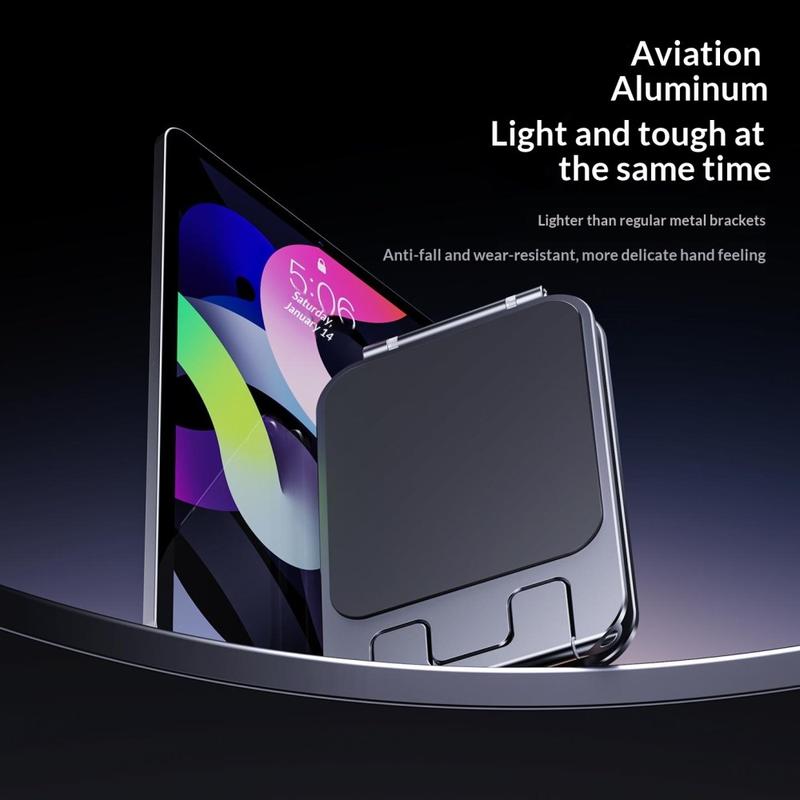 Fabricado em liga de alumínio premium, este suporte combina durabilidade com um visual moderno e elegante. A construção robusta ajuda a proporcionar um suporte estável para o seu dispositivo, enquanto as almofadas de silicone antiderrapantes ajudam a protegê-lo de riscos e a reduzir movimentos indesejados durante a utilização. Isto torna-o especialmente útil em secretárias, mesas e outras superfícies planas onde o posicionamento estável é importante.