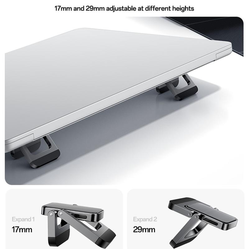 O design leve tem apenas 4 mm de espessura, tornando-o ideal para profissionais, estudantes e viajantes que precisam de um suporte portátil para portátil que permaneça fixo sem adicionar volume. Duas posições de altura ajustáveis permitem-lhe escolher o ângulo de trabalho mais confortável, quer esteja a digitar, a ver conteúdos ou a trabalhar durante longos períodos.