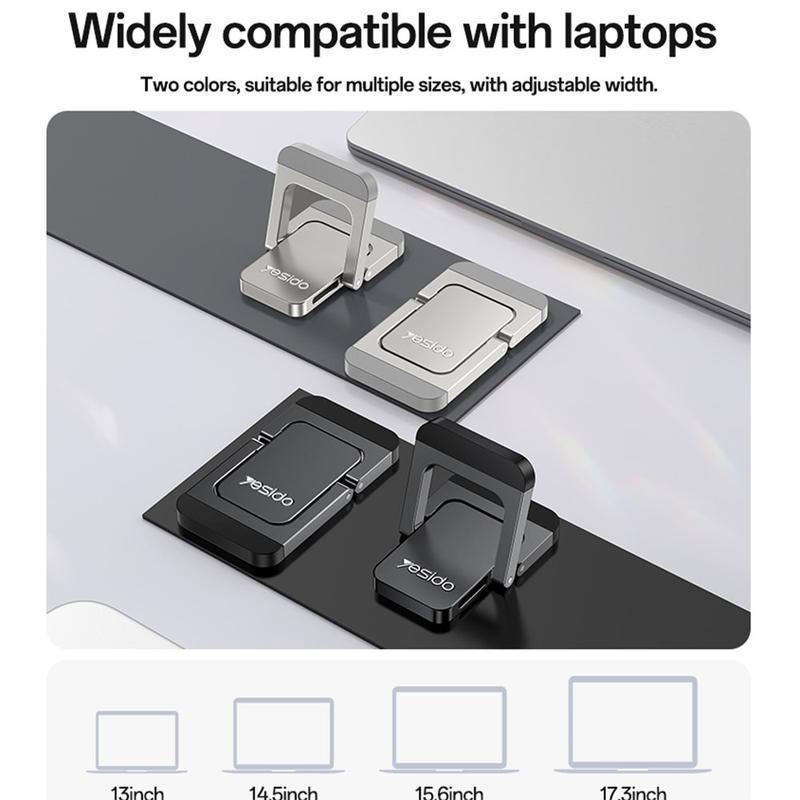 Melhore o conforto e a circulação de ar enquanto trabalha com o conjunto de suportes para portáteis YESIDO LP11. Concebidos como um par compacto de suportes dobráveis, estes suportes ultrafinos fixam-se à parte inferior do seu portátil e desdobram-se rapidamente, formando um suporte triangular estável. Ao elevar ligeiramente o dispositivo, ajudam a criar uma melhor circulação de ar por baixo do portátil, melhorando simultaneamente o ângulo de visão para uma digitação mais confortável e um melhor posicionamento do ecrã.
