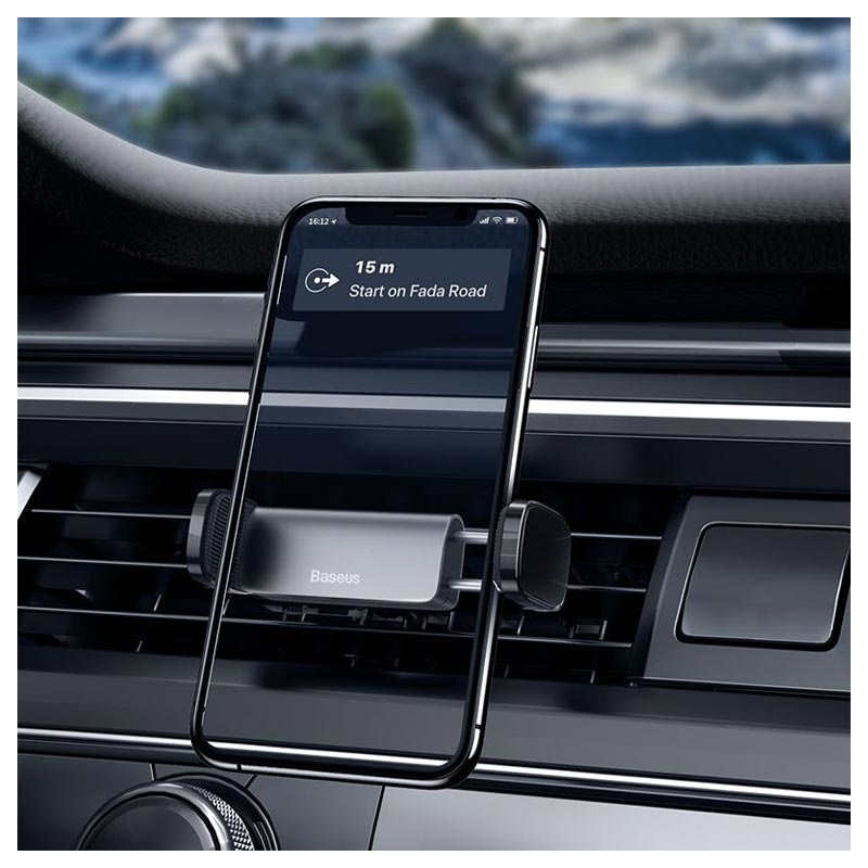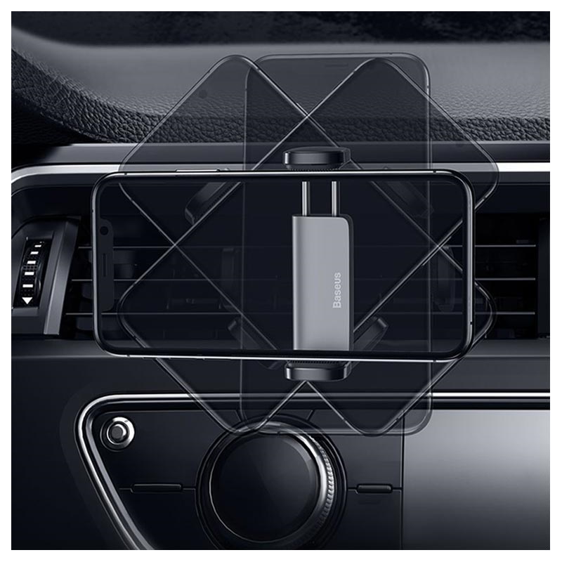 O suporte compacto de carro Baseus Steel Cannon prende firmemente o seu smartphone durante as viagens sem ocupar muito espaço na grelha de ventilação.