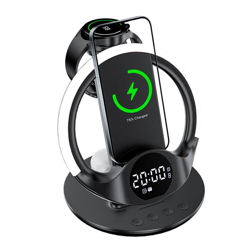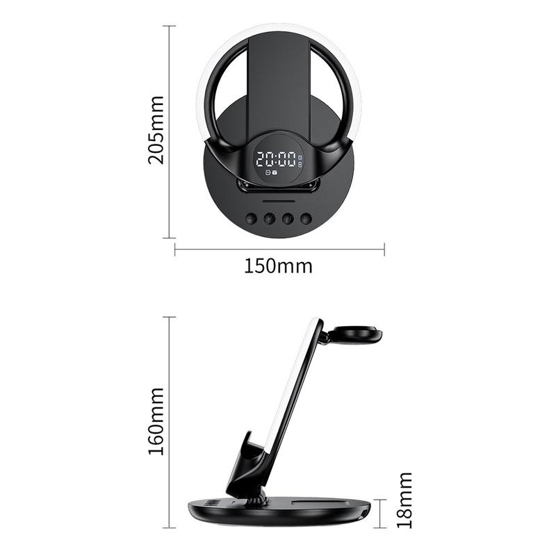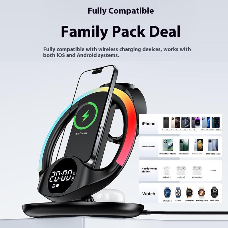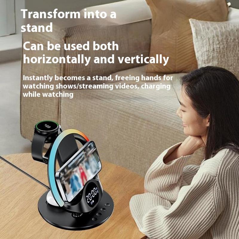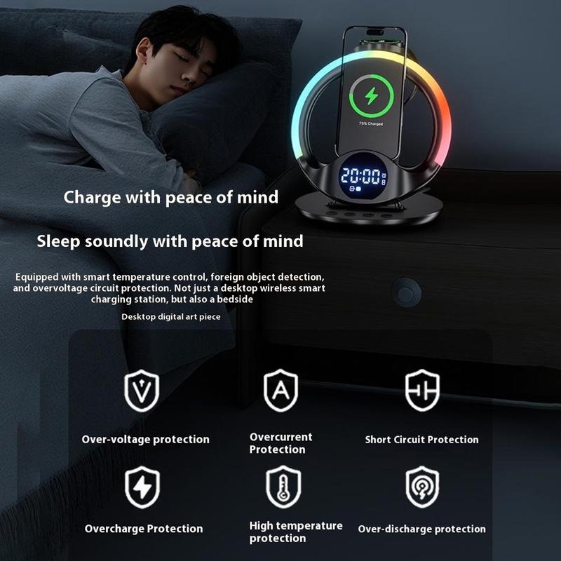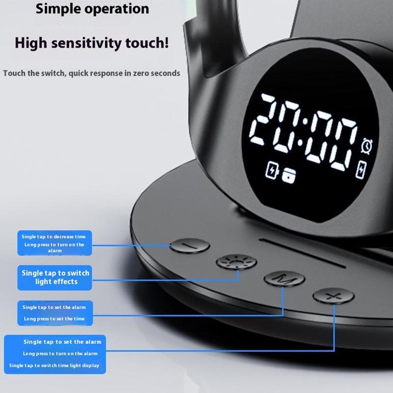 Estação de carregamento sem fios N01 6 em 1 / Suporte magnético de carregamento rápido com despertador, controlo inteligente da temperatura e luz nocturna