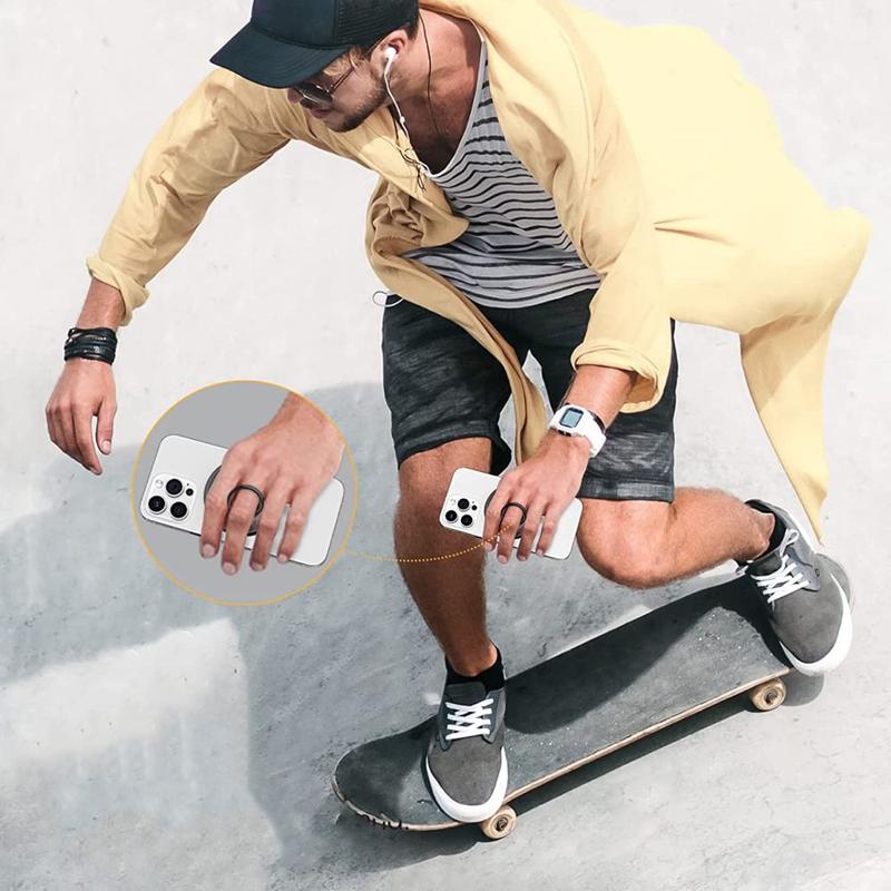 O anel dobrado cria uma superfície plana que não afecta a aderência do dispositivo. Para além das suas funções de proteção, o suporte para os dedos também pode funcionar como um suporte para ver vídeos ou fotografias, o que aumenta significativamente a conveniência de desfrutar do entretenimento.