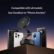 Concebido para suportar smartphones de 4 a 7 polegadas, o suporte funciona com a maioria dos modelos de telemóveis populares. Está incluída uma folha magnética para dispositivos ou capas sem suporte magnético integrado.