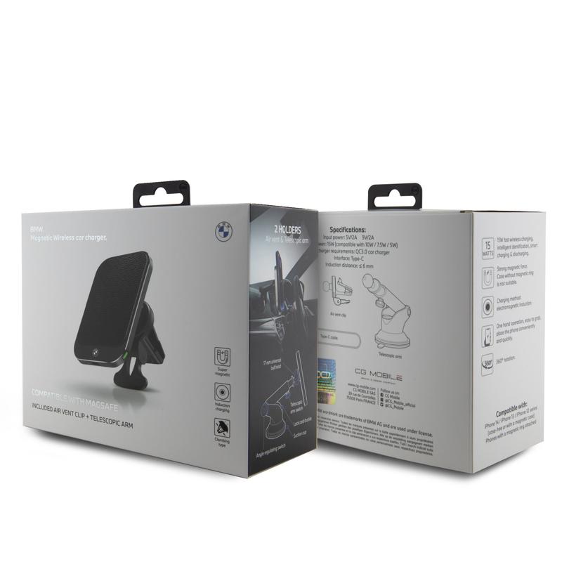 Suporte magnético para automóvel BMW Signature Edition com carregamento sem fios de 15 W - Compatível com MagSafe, suporte para ventilação e ventosa