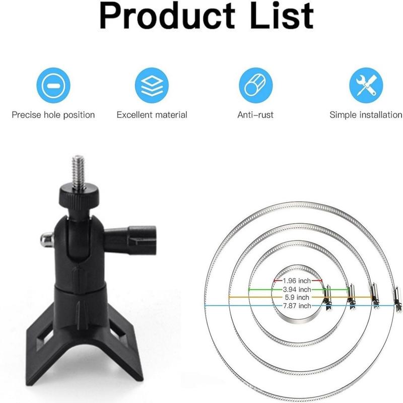 Equipado com uma braçadeira de aço inoxidável, o suporte oferece uma força de preensão forte e estabilidade a longo prazo. Mantém a câmara no lugar de forma segura em postes ou estruturas redondas, mesmo em condições exteriores.