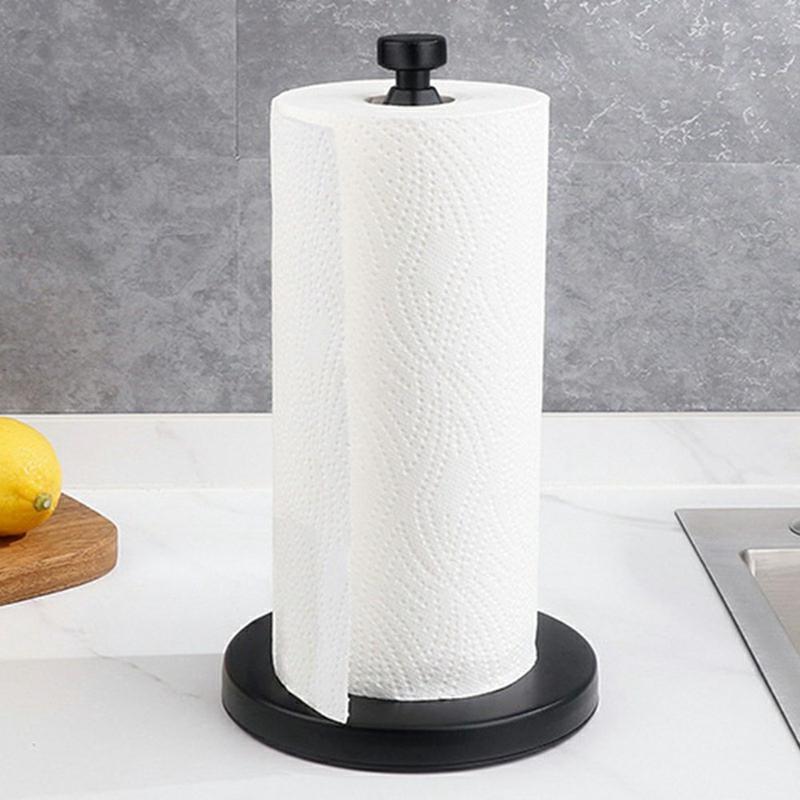 Suporte para papel de cozinha em aço inoxidável com amortecimento - Base antiderrapante com peso, corte com uma mão, suporte para bancada