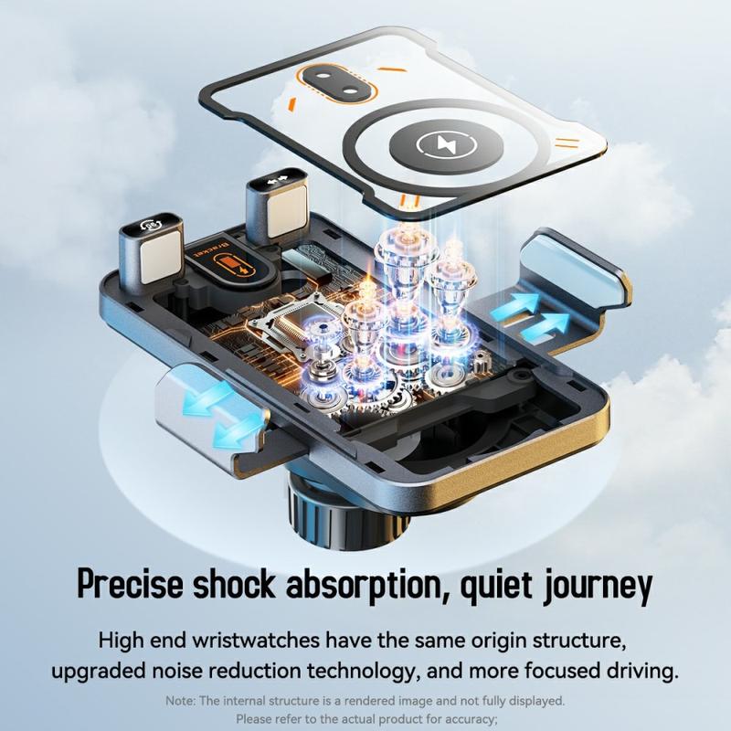 O suporte para telefone de carro com sensor inteligente e carregador sem fio de 15W oferece uma solução completa para motoristas modernos - carregamento rápido e confiável com uma pegada automática e ângulos de visão flexíveis. Graças ao seu suporte de ventilação seguro e às funcionalidades de gestão de cabos, desfrutará de um interior simplificado e de um funcionamento seguro e conveniente do dispositivo ao longo de cada viagem.