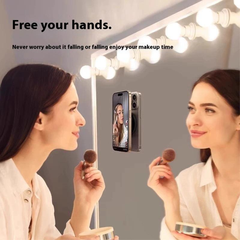 Doze ímanes de neodímio N52 juntam-se a um conjunto denso de ventosas de silicone para fixar o telemóvel em vidros, azulejos, metal ou painéis de instrumentos brilhantes em segundos. O campo magnético fechado mantém os dispositivos até 1 kg sem perturbar a receção de GPS ou 5G, enquanto a ventosa de vácuo se agarra mesmo em estradas esburacadas.
