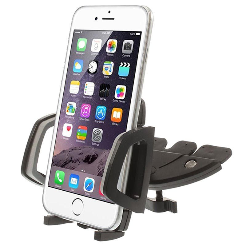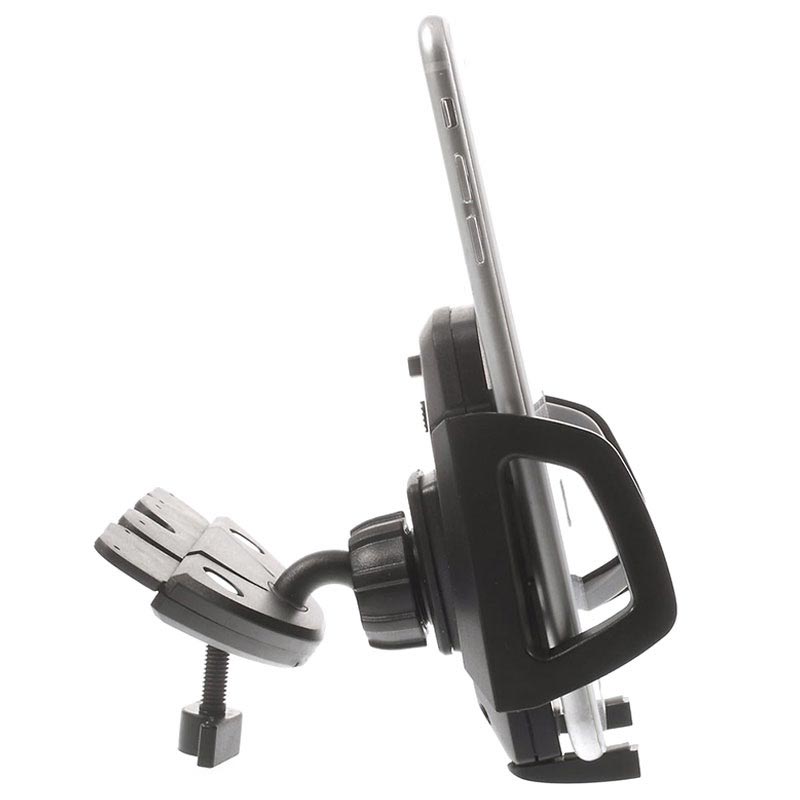 Instale este suporte na ranhura do leitor de CD/DVD do seu carro e mantenha sempre o seu aparelho ao alcance de um relance.