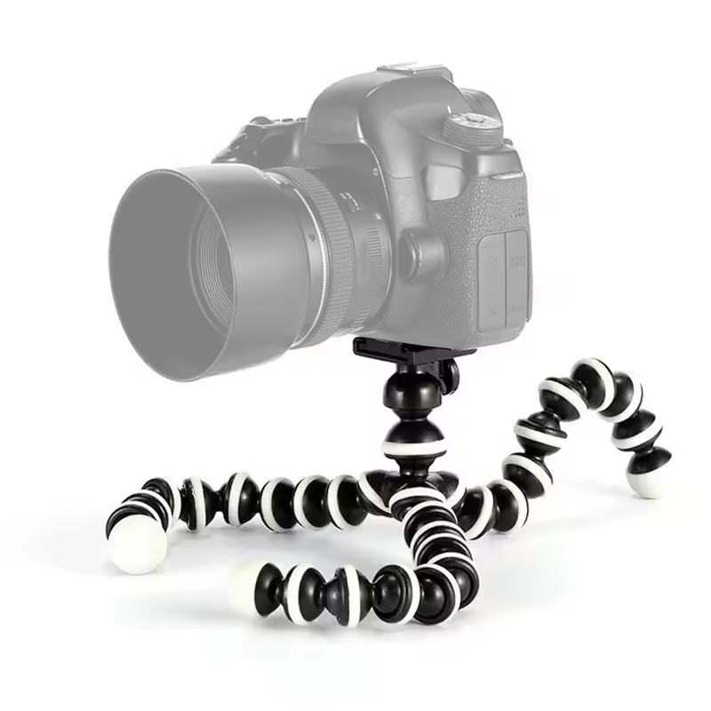 - Pernas flexíveis: As pernas dobráveis e ajustáveis permitem envolver o tripé em torno de vários objectos ou posicioná-lo em superfícies irregulares para ângulos e estabilidade únicos.