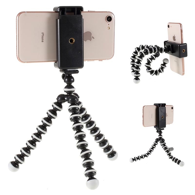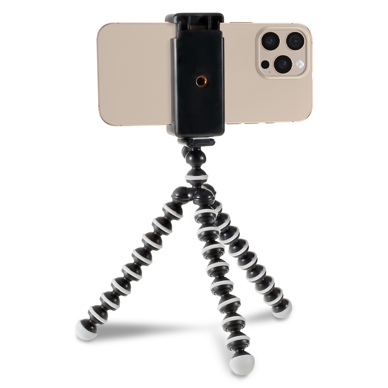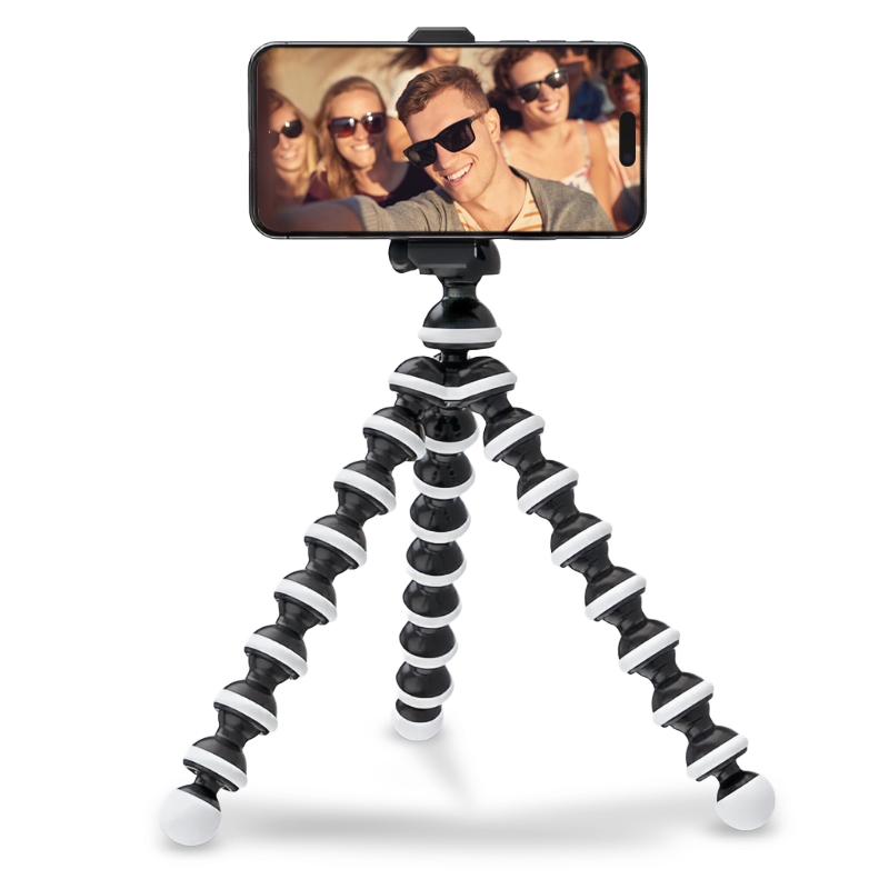 Melhore a sua fotografia móvel com o suporte de tripé universal flexível para smartphone e desfrute da liberdade de captar fotografias e vídeos fantásticos de qualquer ângulo e em qualquer superfície.