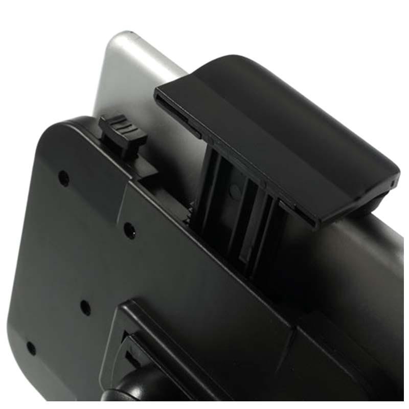 - Pinças laterais almofadadas seguram o seu dispositivo com firmeza
