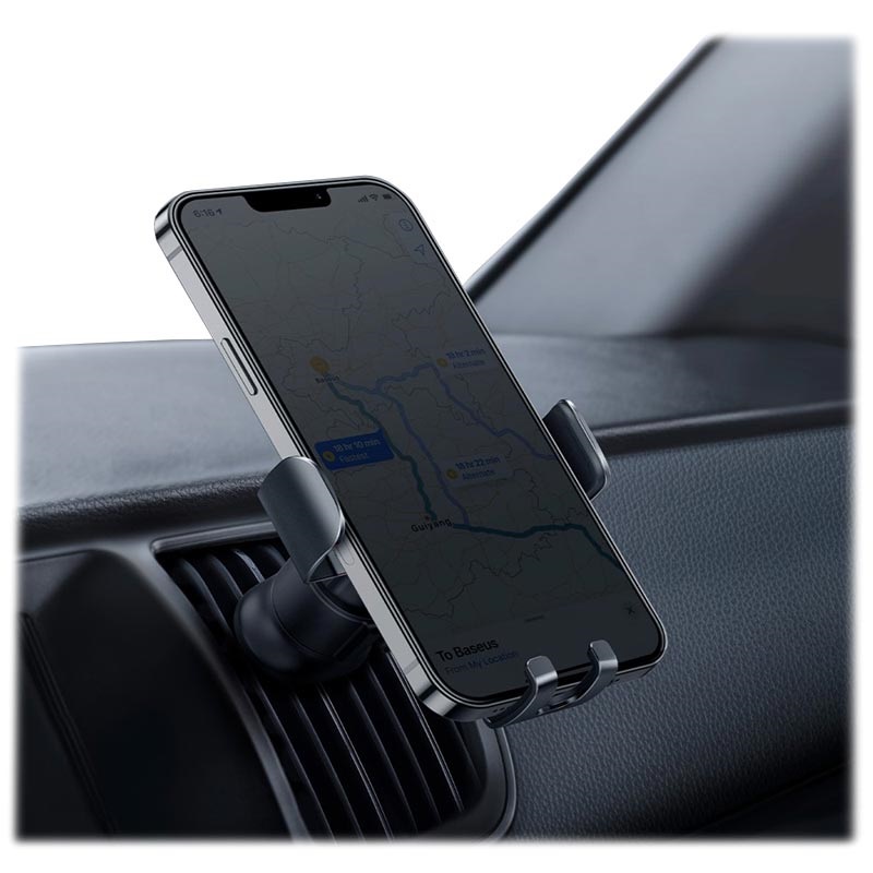 Mantenha o seu smartphone estável e seguro enquanto conduz, a salvo de quedas e facilmente alcançável a qualquer momento, proporcionando um melhor foco na estrada. O Baseus Metal Age II é feito numa liga de alumínio e materiais ABS, concebido para se fixar na conduta de ventilação do carro, para que com as suas mandíbulas mecânicas possa suportar o seu smartphone sem se mover, mesmo que conduza em estradas de terra batida.