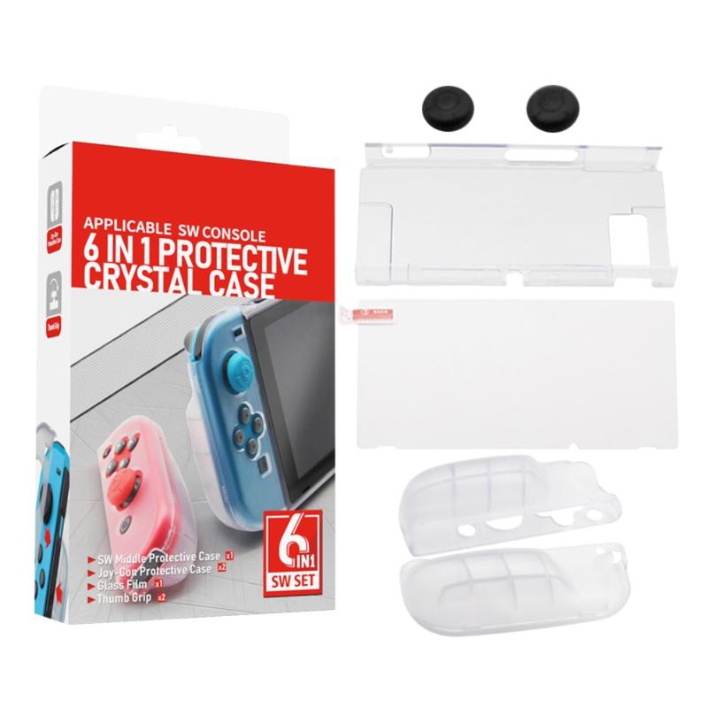 SW369 Kit de capas transparentes 6 em 1 para a Nintendo Switch, capa anti-riscos com protetor de ecrã e tampas de aderência