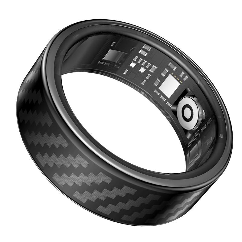 SY02 Anel inteligente com padrão de fibra de carbono - Monitor de sono, oxigénio no sangue e ritmo cardíaco com caixa de carregamento sem fios
