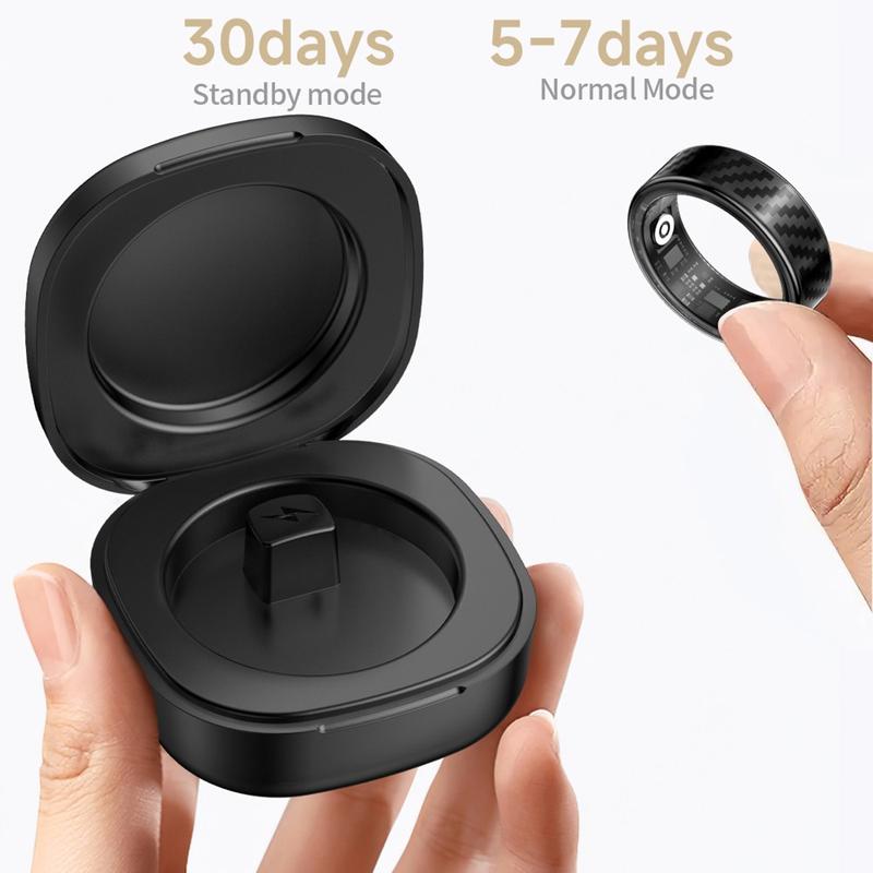 SY02 Anel inteligente com padrão de fibra de carbono - Monitor de sono, oxigénio no sangue e ritmo cardíaco com caixa de carregamento sem fios