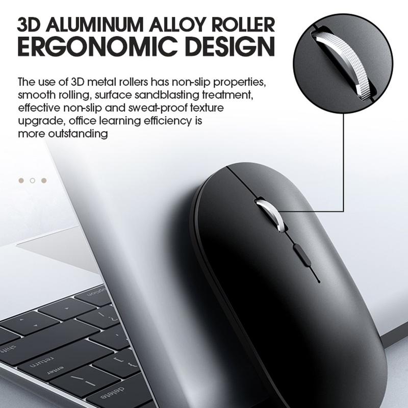 T-WOLF X2 2.4G Rato sem fio - Rato ótico recarregável e silencioso com roda de deslocamento em metal 3D e DPI ajustável (800/1200/1600)
