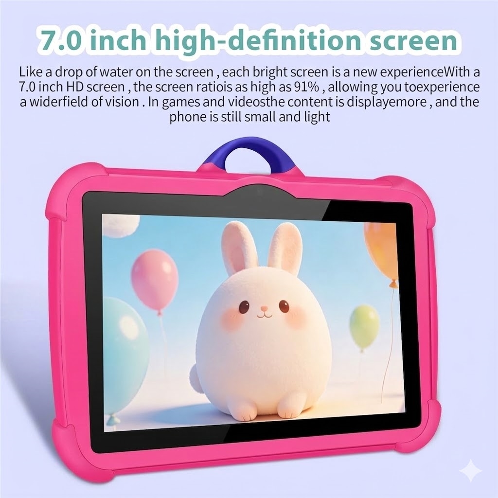 A capa protetora durável ajuda a proteger o tablet contra quedas acidentais, ao mesmo tempo que fornece um suporte integrado para uma visualização confortável sem usar as mãos. Com duas câmaras e conectividade Wi-Fi, as crianças podem tirar fotos, gravar vídeos e desfrutar de videochamadas simples com a família e os amigos. A bateria maior de 4000 mAh suporta um tempo de uso mais longo, tornando-o conveniente para viagens, atividades escolares ou uso diário em casa.