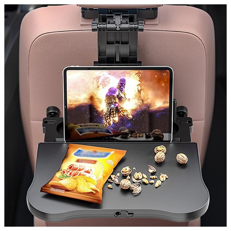 Esta mini mesa multifuncional dobrável para banco de automóvel organizará os seus acessórios essenciais durante longas horas de viagem.