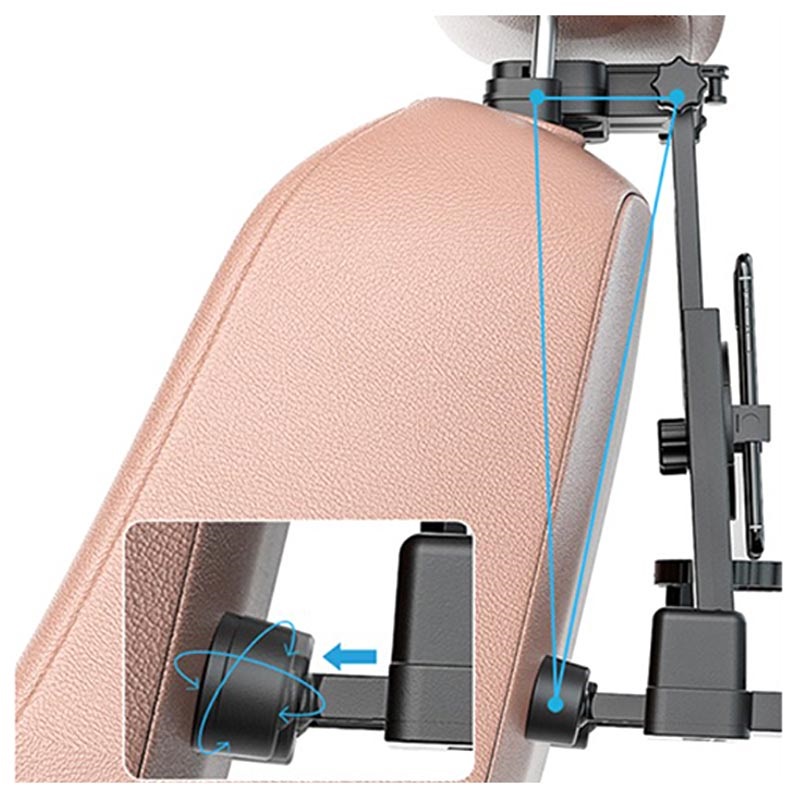 Graças ao suporte extensível para assento traseiro e ao braço da mesa, o tabuleiro multifuncional dobrável A08 pode ser utilizado por crianças ou adultos. Equipado com vários compartimentos, tem sítio para duas chávenas (uma com um braço de segurança extensível), um suporte para smartphone (6-10cm de largura), um suporte para tablet (até 29cm de comprimento), e uma mesa / bandeja com superfície antiderrapante, que pode por exemplo servir como suporte para portátil. Montado no apoio de cabeça e estabilizado no encosto do assento, permanece no lugar mesmo em estradas acidentadas.