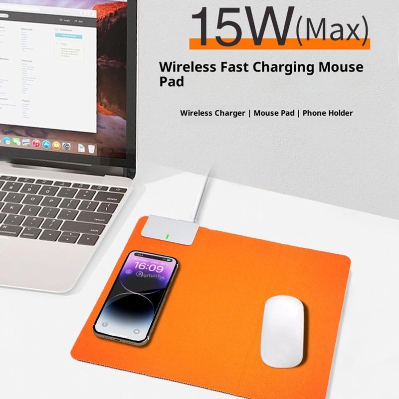 - Tapete de rato sem fios com carregamento rápido de 15W integrado