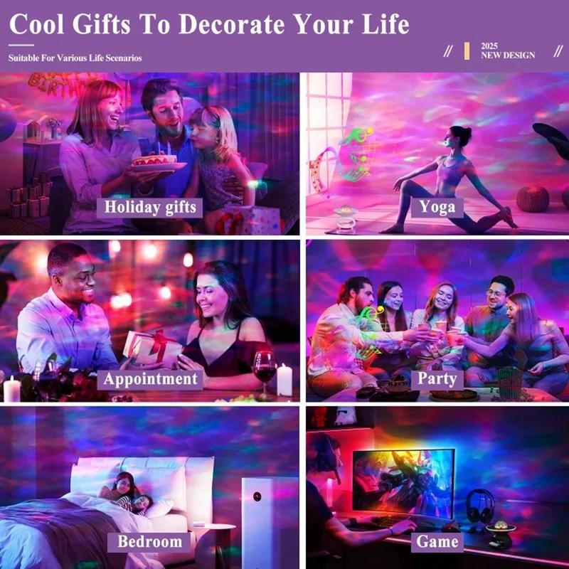 - Projeção de estrelas hipnotizante - 10 modos RGB com brilho ajustável projectam nebulosas em movimento nas paredes e no teto (Ø 170 x H 150 mm).