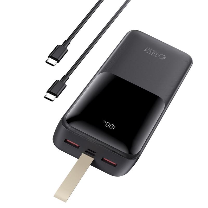 Banco de potência Tech-Protect PB03 30000mAh com USB-C, 2 portas USB-A, ecrã LED - 22.5W