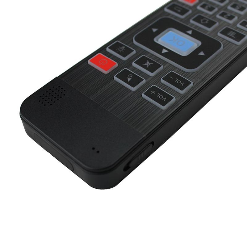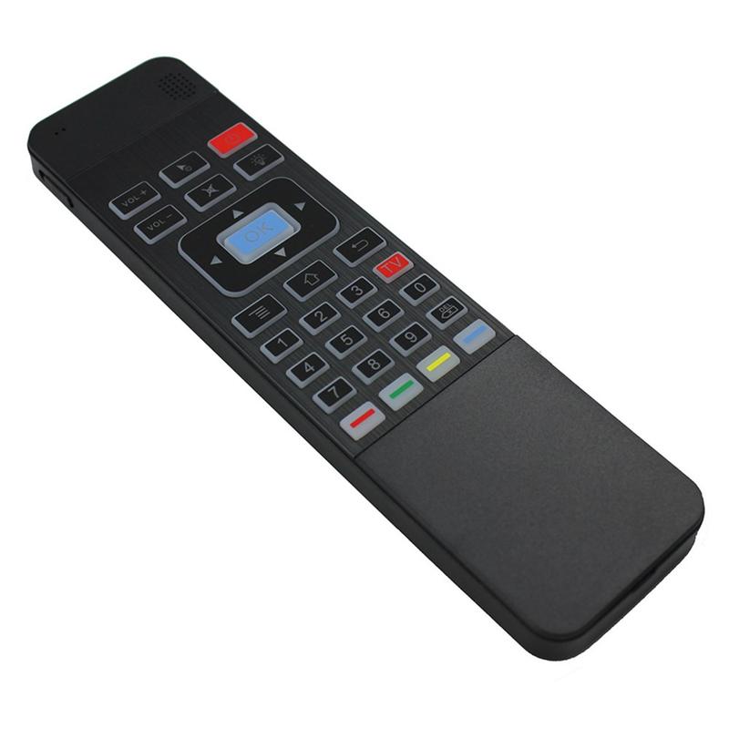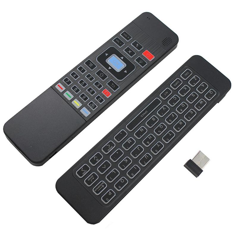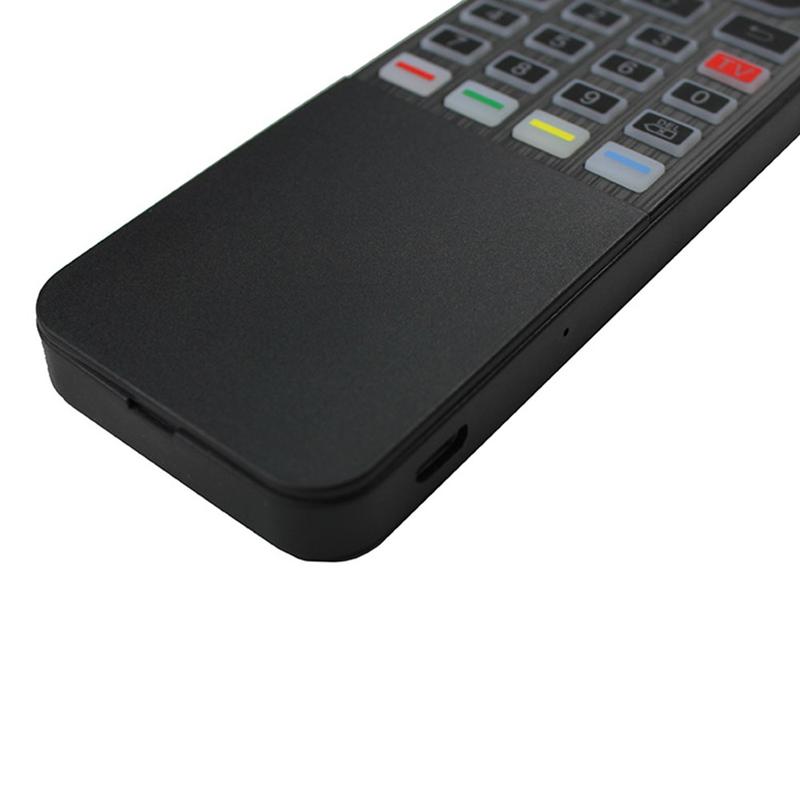 Suporte para utilização multifuncional: giroscópio + teclado QWERTY + 5 teclas de aprendizagem por infravermelhos + retroiluminação de 7 cores