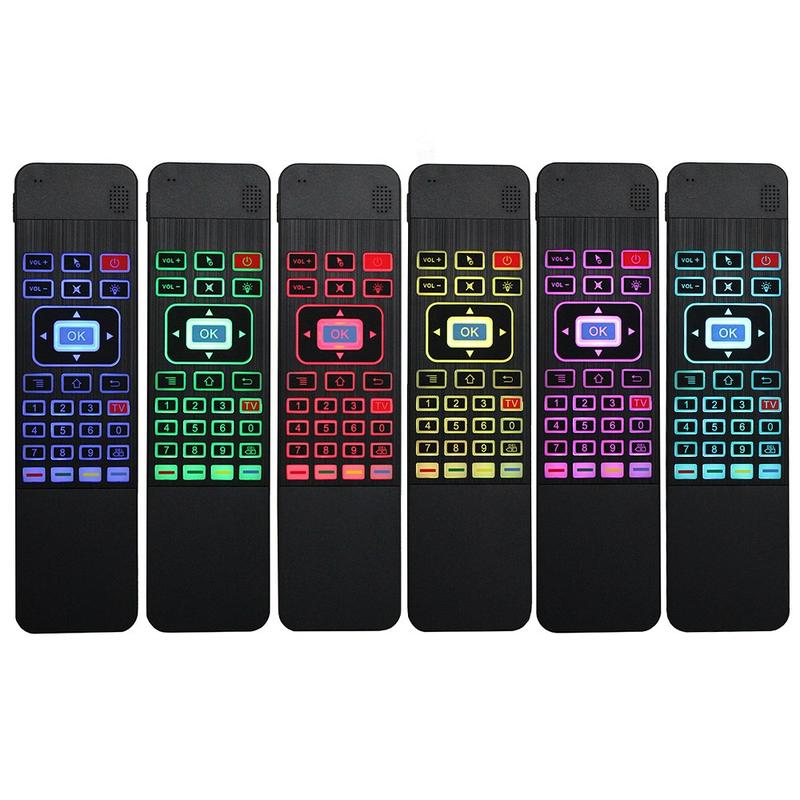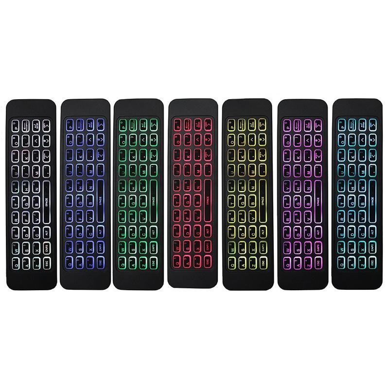 Teclado remoto sem fios T3-C Air Mouse com retroiluminação de 7 cores para Smart TV, Android TV Box, PC, HTPC