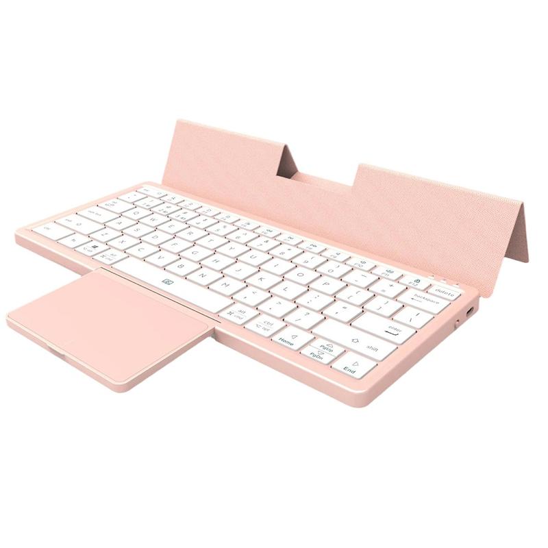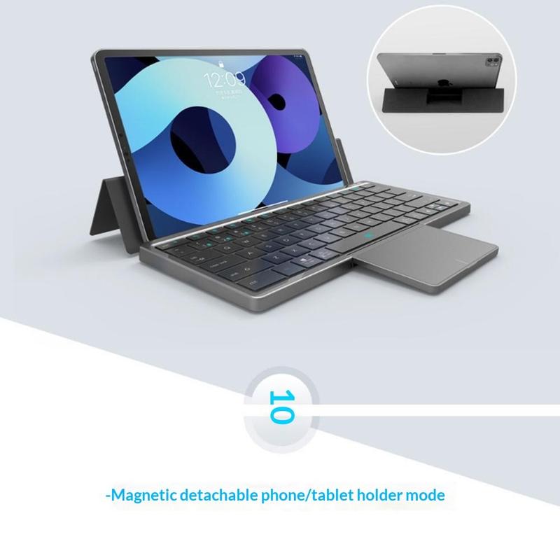 Teclado sem fios dobrável KF 8700 com touchpad e capa de poliuretano - Compatível com Bluetooth para vários dispositivos, recarregável por USB-C
