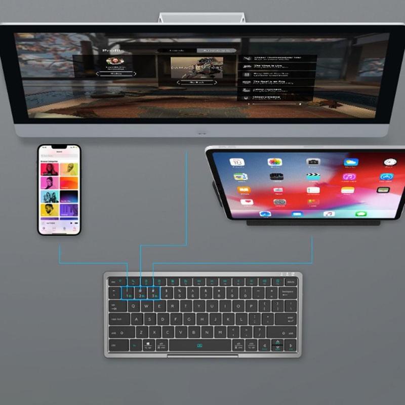 O teclado sem fios KF 8700 compatível com Bluetooth foi concebido para um trabalho flexível em telemóveis, tablets e computadores portáteis. O seu design dobrável, touchpad deslizante oculto e capa protetora em poliuretano tornam-no uma solução completa para a produtividade móvel. Com suporte para três dispositivos conectados ao mesmo tempo, permite uma transição suave entre plataformas, mantendo a sua configuração compacta, elegante e eficiente.