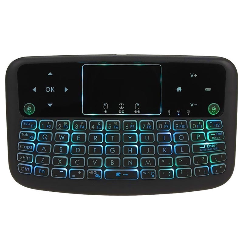 Teclado Sem-fios de 2.4 GHz com Luz LED Multicolorida para Smart TV - teclas Fn, teclas multimédia, painel tátil