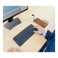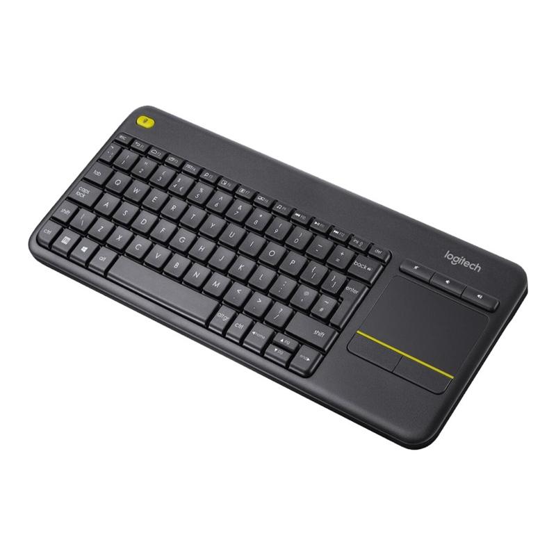 O teclado de toque sem fio K400 Plus é um layout de teclado de tamanho completo e touchpad em um tamanho compacto. As teclas de curva são ideais para digitadores de toque e o toque de tecla suave torna este teclado silencioso. O touchpad em tamanho real oferece os gestos familiares de rolagem e navegação. Com os botões esquerdo e direito abaixo do touchpad e os botões de controle de volume acima, o controle está ao seu alcance. Para controle com as duas mãos, normalmente usado por quem gosta de usar os polegares para navegar, um botão de clique esquerdo do mouse está localizado no lado superior esquerdo do teclado - navegue com a mão direita, selecione com a esquerda.