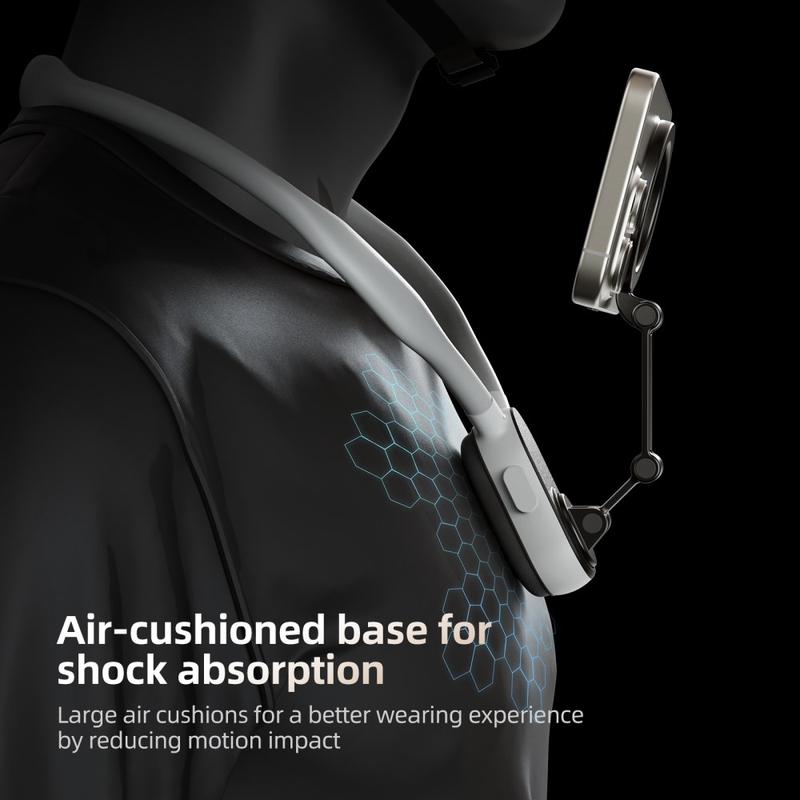 O exterior do suporte para o pescoço é feito de material de silicone altamente elástico e flexível, suave e confortável ao toque, sem pressão de utilização. O interior é feito de liga de zinco e material de aço inoxidável, sem preocupações de deformação, fissura e quebra