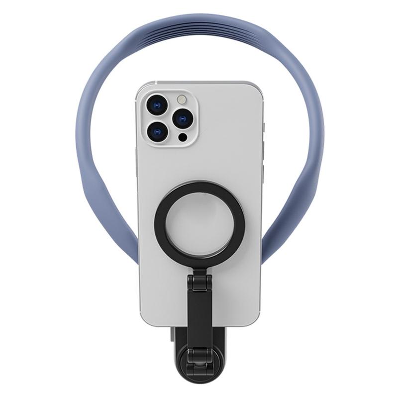 TELESIN MNM-001 Para iPhone 12 / 13 / 14 / 15/ 16 Suporte de silicone para pescoço Suporte magnético para telefone com bastão de selfie - Azul