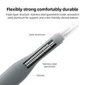 O exterior do suporte para o pescoço é feito de material de silicone altamente elástico e flexível, suave e confortável ao toque, sem pressão de utilização. O interior é feito de liga de zinco e material de aço inoxidável, sem preocupações de deformação, fissura e quebra