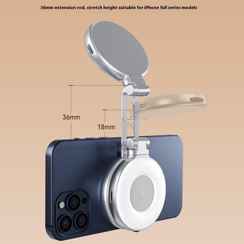 Transforme qualquer momento num retrato impecável. O TELESIN S5-BGD-01 combina um painel LED High-CRI, um braço giratório de 360°, um suporte MagSafe e um espelho de maquilhagem HD de 56 mm num único acessório do tamanho da palma da mão. Encaixe-o magneticamente num iPhone 12-16 ou coloque o anel metálico debaixo de qualquer capa de telemóvel e, em seguida, incline, rode e estenda a haste de 36 mm para banhar o seu rosto com luz de estúdio - perfeito para selfies, vlogs ou videochamadas nocturnas em toda a Europa.