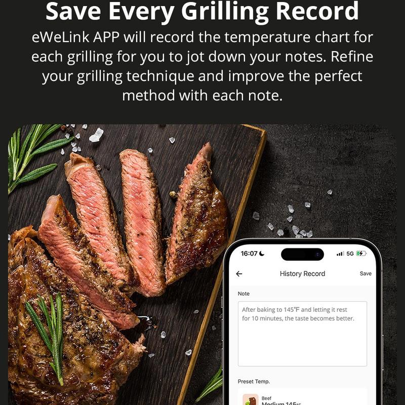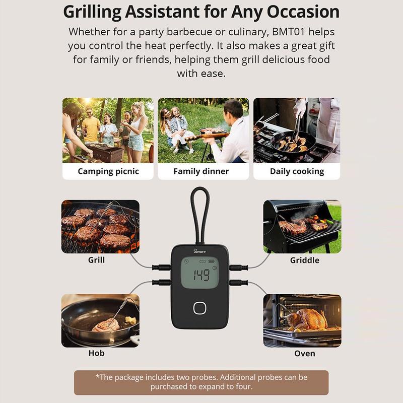 Melhore a sua rotina de grelhar e assar com o Termómetro de Carne Bluetooth SONOFF BMT01 - onde a cozinha precisa se alia à conveniência inteligente. Desfrute de paz de espírito enquanto aperfeiçoa cada prato, desde bifes suculentos a pratos favoritos cozinhados lentamente.