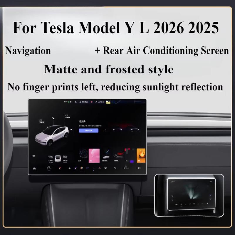 2 protetores de tela de vidro temperado para Tesla Model Y / Model L (2025-2026) - Proteção antirreflexo para telas frontais de 16" e traseiras de 8"