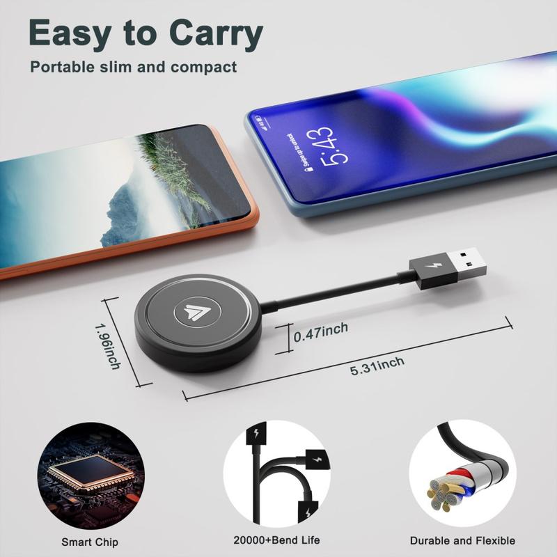 THT-020-5+ Conversor CarPlay sem fios para Android Auto Adaptador CarPlay com fios para sem fios compatível com interface USB / Tipo C