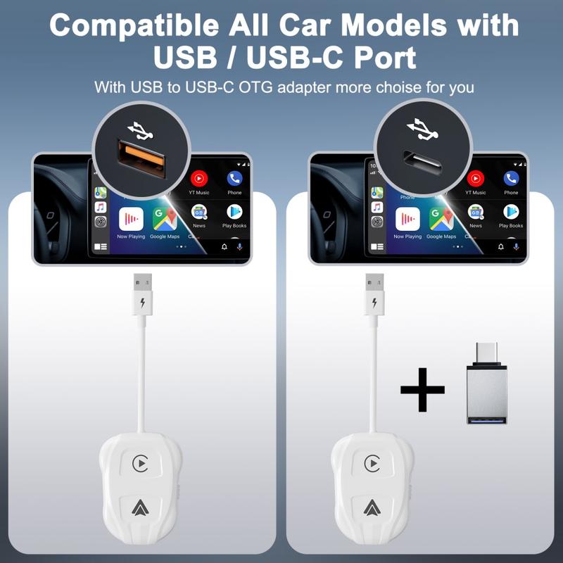 THT-020-9 Adaptador sem fios para Carplay Android Auto com fios para adaptador sem fios - Branco